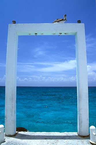 桟橋のゲート?を見ると、ペリカンが留まっていた。
