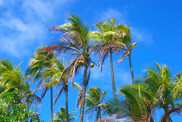 窓ガラスを下ろし椰子の木を見ながらのドライブ