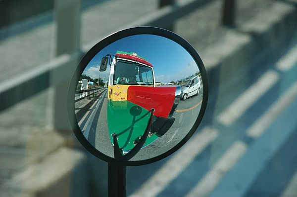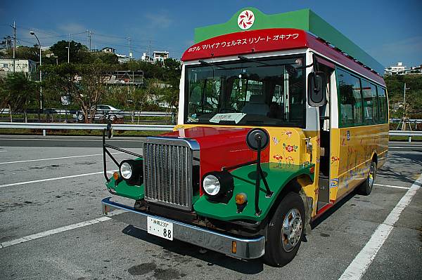 備瀬から空港へ送ってもらうバスはこんなに鮮やかなペイントが