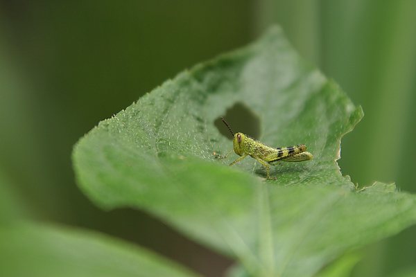 最後はバッタの子供。足の黒いラインがはっきりしているような気がするけど・・・
