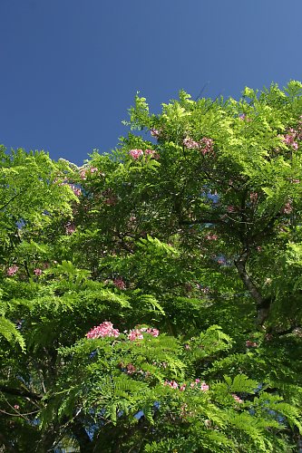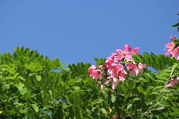 フェリー乗り場の近くにはきれいなピンクの花をつけた大きい木があった。