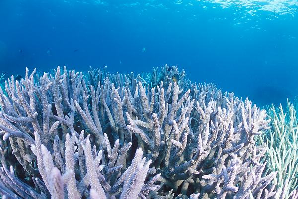 黒っぽい色が白いサンゴと対照的だった