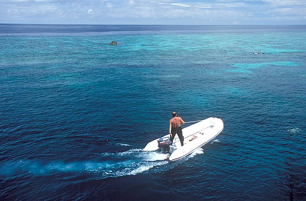 船から遠くに浮上したりすると、この小さなボートでビューンっと迎えにきてくれる
