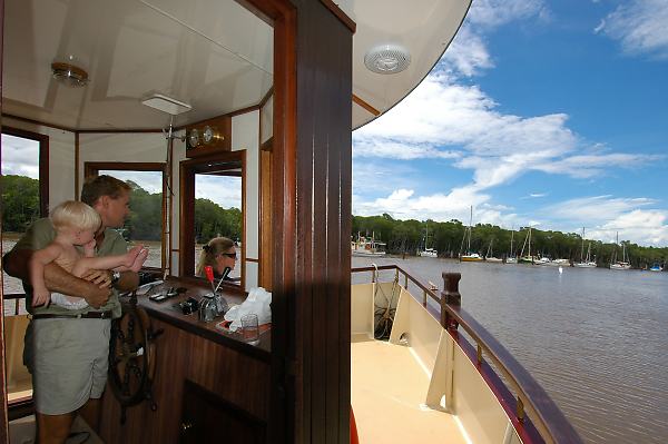わあ、かわいい船!穏やかな流れだからいいけど、